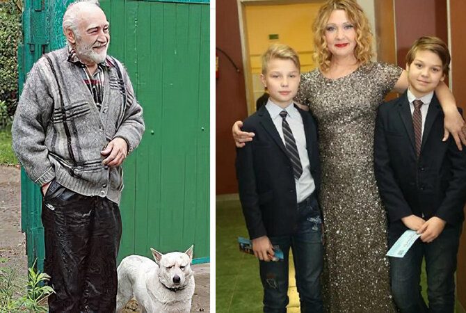 Вячеслав Тихонов (в последние годы жизни). На фото справа: Анна Тихонова с сыновьями.