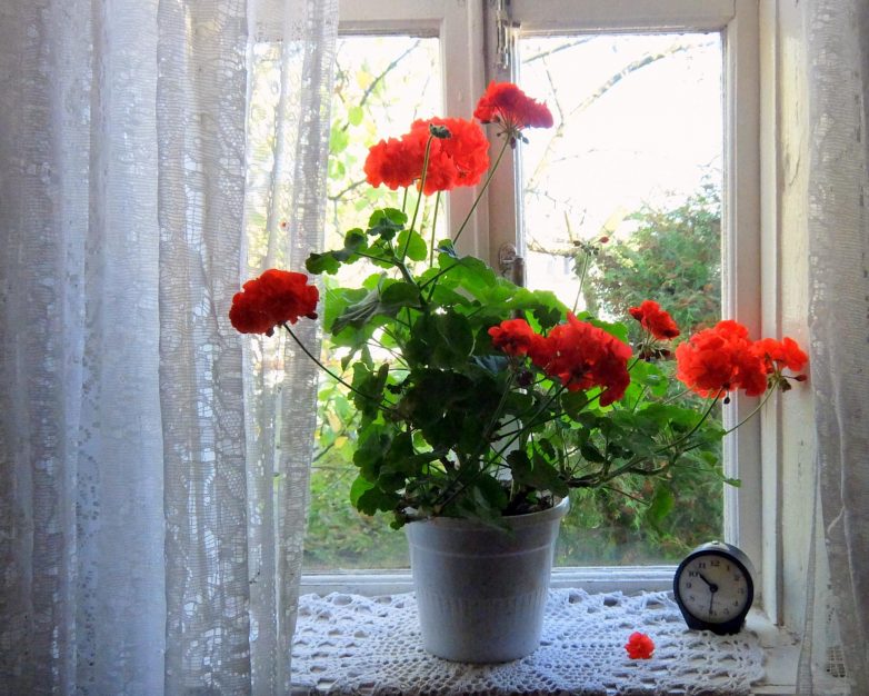 2. Герань (правильное название — пеларгония садовая) — второе по популярности растение на советском подоконнике. В отличии от предыдущего растения, герань играла чисто эстетическую роль, как обильно цветущее круглый год растение. Также считалось, что герань очень эффективно очищает воздух в помещении.