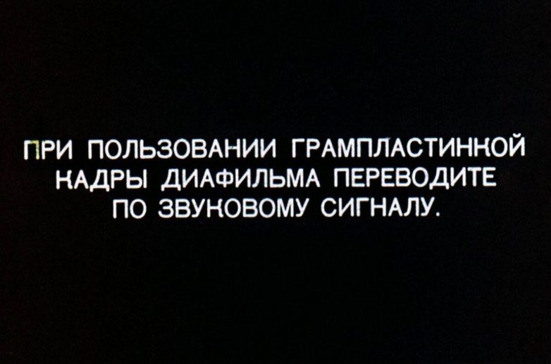 К некоторым фильмам шли грампластинки; тогда герои разговаривали разными смешными голосами, а кадры на фильмоскопе нужно было переключать по звуковому сигналу.