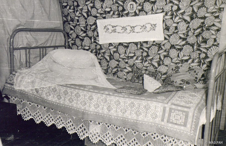 Кровать, покрытая «кошмой» в доме Е.Н. Чунина.