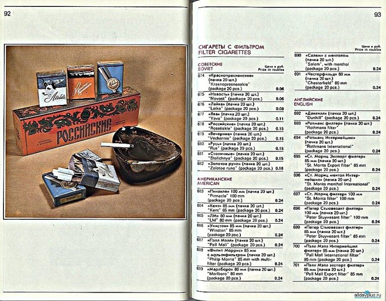 Сигареты «Лайка», «Новость» и в «Берёзке» за чеки? Серёжа(это аФФтар" данной в общем-то полуграмотной какашки). Ты реально то жил во времена СССР? Специально для тебя. Указанные тобой как товар на валюту сигареты продавались в ОТКРЫТОЙ продаже в любом киоске стоимостью 18 КОПЕЕК (советских)пачка! «Российские» (как и болгарские «БТ») стоили 40 копеек за пачку. И тоже «свободно»! Коньяк «REMY MARTIN» я лично покупал в нашем же отечественном гастрономе, за 26 рублей 80 копеек. Даже один раз «разорился » на РЕАЛЬНЫЙ «Napoléon»( в коробке, на лафете, с фигуркой императора в виде пробки. А не то польское пойло, которым нас опаивали после развала СССР воремена «гайдаро-ельцинского потребительского рая»).Я совсем не собираюсь наводить лоск на потребительский рынок во времена Советского Союза. Но и писать полуграмотную грязь про те времена? Похоже «дефицит» как явление не только не исчез… Стал ещё «острее». Только дефицит это -«СОВЕСТИ и ПОРЯДОЧНОСТИ!» Про ум я уже не говорю. Просто какое-то «déjà vu» (дежавю с фр. в преводе «уже виденное»).Потянуло запашком с помойки под названием«перестройка». И про качество импорта, даже в «Берёзках» не надо хвалебные оды петь. Вон оно… ваше капиталистическое изобилие с потрясающим качеством. Сосиски даже мой кот жратьотказывается!
