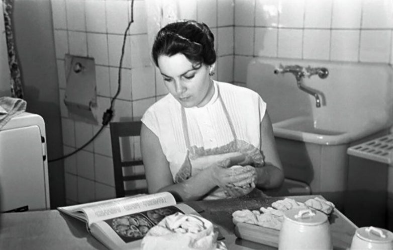 На фотографии конца 60-х Надежда Румянцева, обед готов, в руках дуршлаг, кухня сверкает чистотой. И кажется, что героиня фильма «Девчата» сейчас звонко крикнет: «Кому добавки? Налетай!»