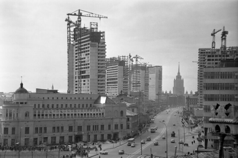 1967. Вид на Кремль и строящуюся гостиницу «Россия»