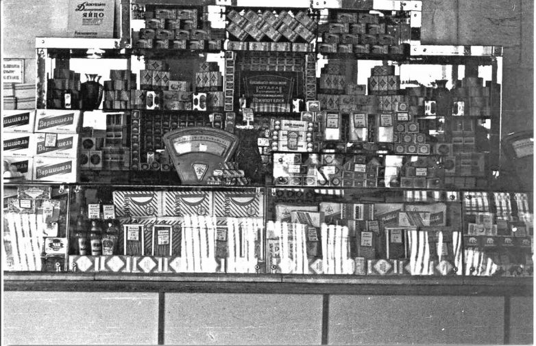 Почему именно 50-е? РАЙПО есть и теперь. Счётами в сельских магазинах ещё в начале 2000-х точно пользовались. А вот полных полок не помню. 77 года рождения. Помню только магазины 80-х.