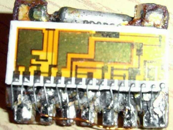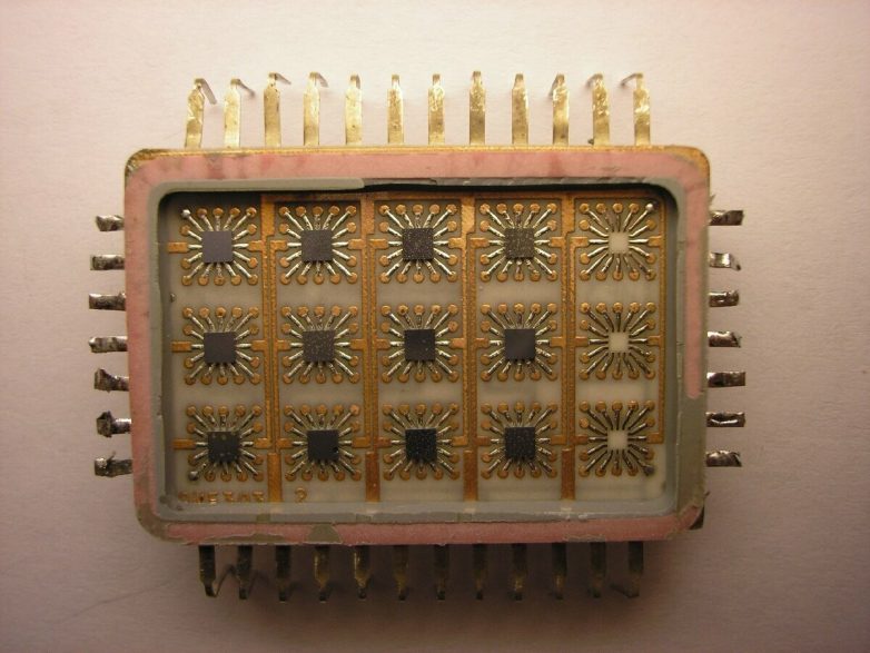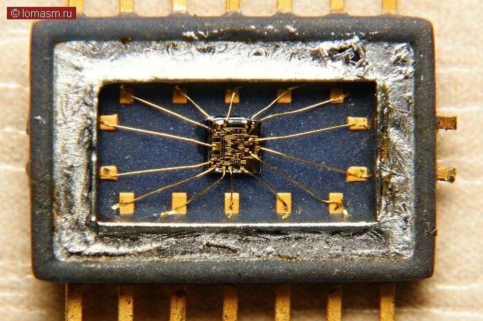 А так выглядела микросхема той же эпохи. Выпускал тот же завод, Зеленоградский «Ангстрем». Только-только осваивали технологию производства.