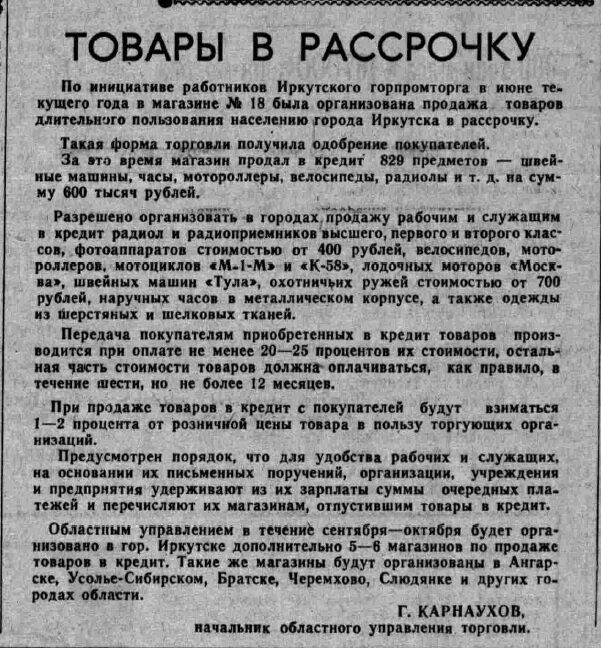 Ведь именно в 1959 г., Совет министров СССР подписал постановление № 915 «О продаже рабочим и служащим в кредит товаров длительного пользования».
