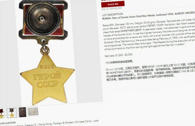За «Золотую Звезду» Героя Советского Союза на аукционе в Гонконге заплатили $13,200.