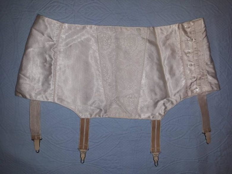 Колготки, какими мы знаем их сегодня еще не появились в продаже (не считая детских хлопковых). Дамы носят чулки — хлопковые или капроновые (если повезло такие купить). Все это добро держалось на таком вот поясе.