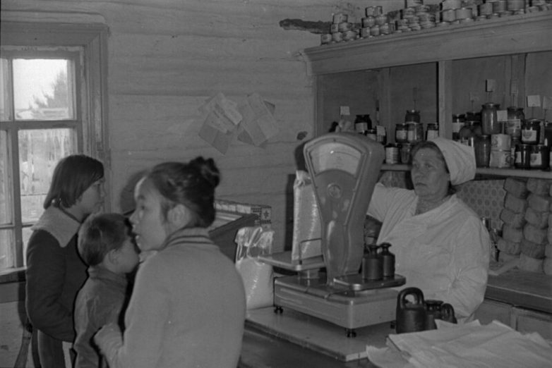 1965. Продавщица Зоя Коноплева. В магазине, поселок Ухта