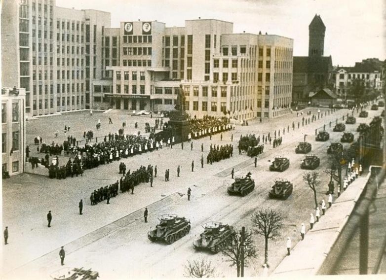 Это что значит: СОВЕТСКИЕ танки в столице Белорусии? А какие ещё могли быть в 1935 году? Вообще-то это всё — СССР…