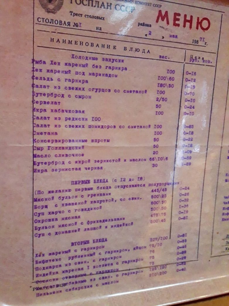 Середина 80-х, город Кишинев. Проектный институт. Я молодой специалист, сразу после института, оклад 125 руб.+премиальные за выполнение плана, и т. д. до 140 руб и выше в среднем. Обед в институтской столовой 40 коп., рядом в ресторане «Пловдив» с обслуживанием -комплексный обед максимум 1,5 руб. Когда в 86 году начался хозрасчет и бригадный подряд и заработали кооперативы уже зарабатывал прилично. Даже подумал, что пророчества Хрущева по достижению коммунизма к концу 80-х уже начинают сбываться...)))