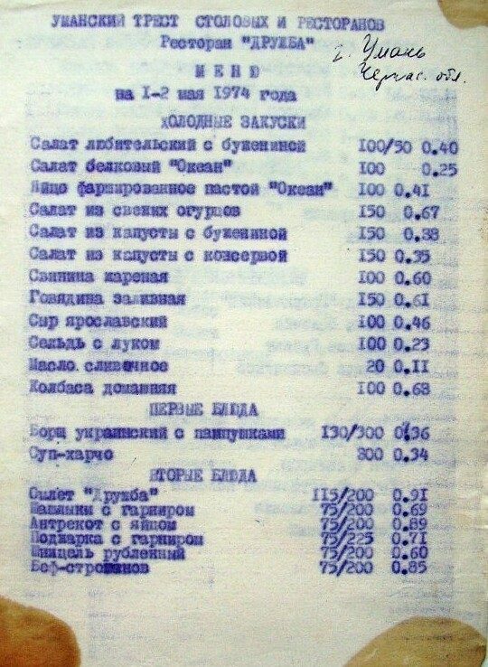Просто любопытная сторона нашей прошлой жизни — ресторан. Место, где отмечали знаменательные события, где люди встречались, расставались, гуляли и отдыхали. И посетить его мог любой, ибо сумма за гулянку была не столь значительно для всех слове населения. Вспомним советские цены и сравним с сегодняшним днем.