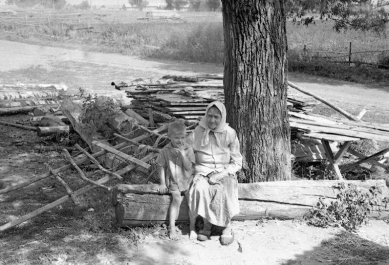 Бабушка с внуком. Мордовская АССР, Ковылкинский район. 1972 год. Фотограф Владимир Карлов.