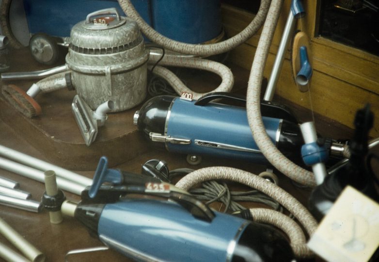 В основном 50-ые и начало 60-ых судя по товарам и фасону одежды.