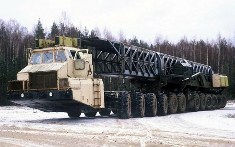 Разработка этого монстра началась в 1983 году, а уже спустя два года конструкторы СКБ-1 Минского автозавода выдали на-гора 24-колесную «многоножку» собственной массой в 65,8 т и грузоподъемностью 150 тонн! Такой гигант предназначался как шасси для мобильной пусковой установки новейшего ракетного комплекса Целина-2.