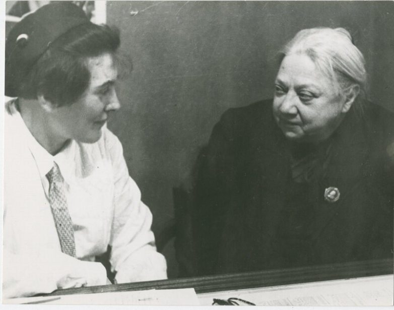 1936. Надежда Константиновна Крупская беседует с Пашей Ангелиной
