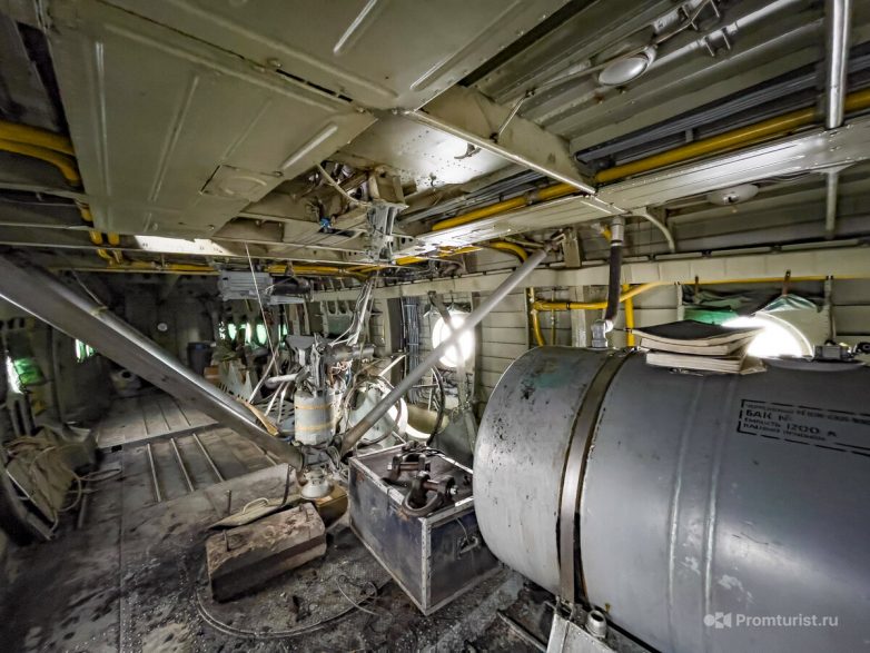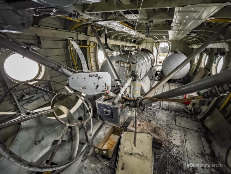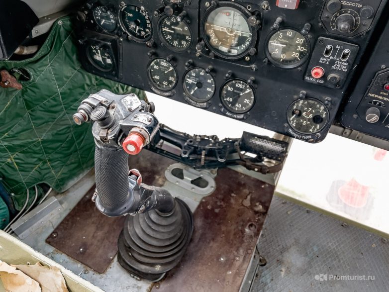 Недавно на этой машине был пробный запуск двигателей, поэтому внутри «керосинило» сильно. Под полом основной кабины, есть кабина внешнего управления с продублированными рычагами управления. Про эту часть будет отдельный рассказ.