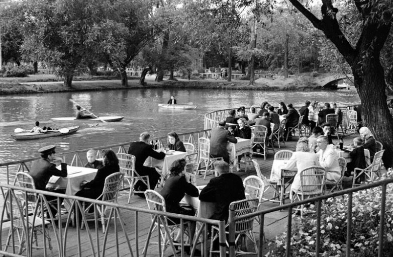 Кафе на террасе в парке Горького в Москве, 1955 год.
