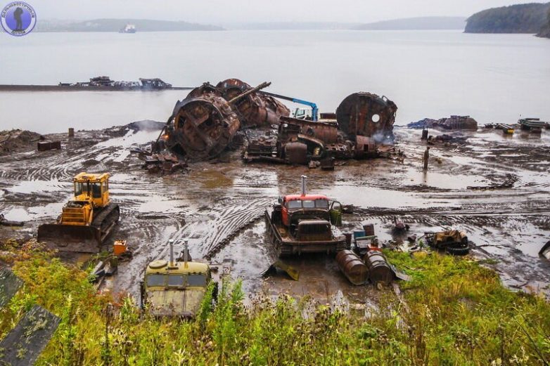 Таскать и грузить металл здесь помогали вот такие тягачи и бульдозеры.