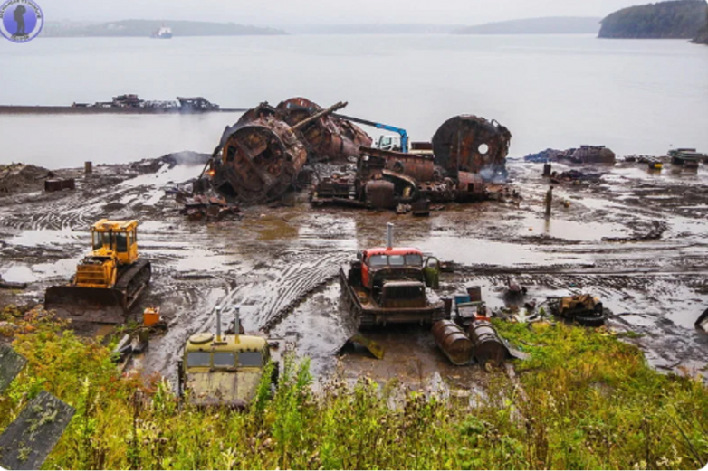 Теперь здесь на берегу находится газо-распилочная станция, на которой пилятся как списанные корабли с окрестных бухт, так и поднятые со дна гавани затонувшие подводные лодки.