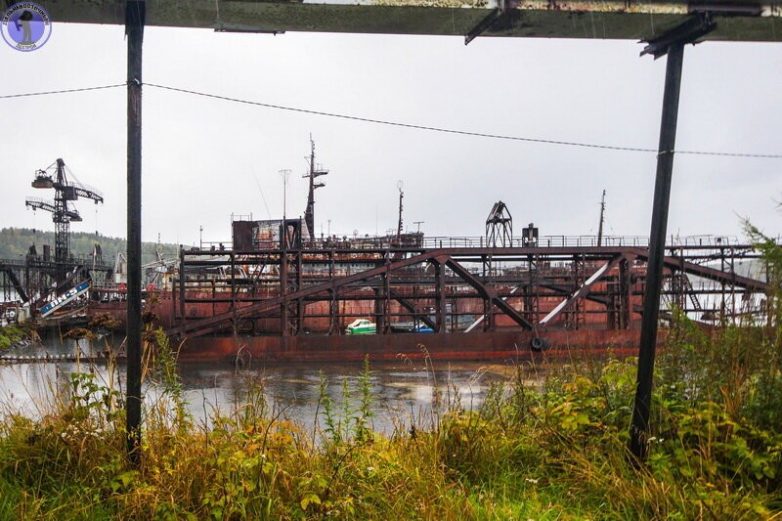 Рядом ржавеет судно плавучей мастерской ПМ-5.