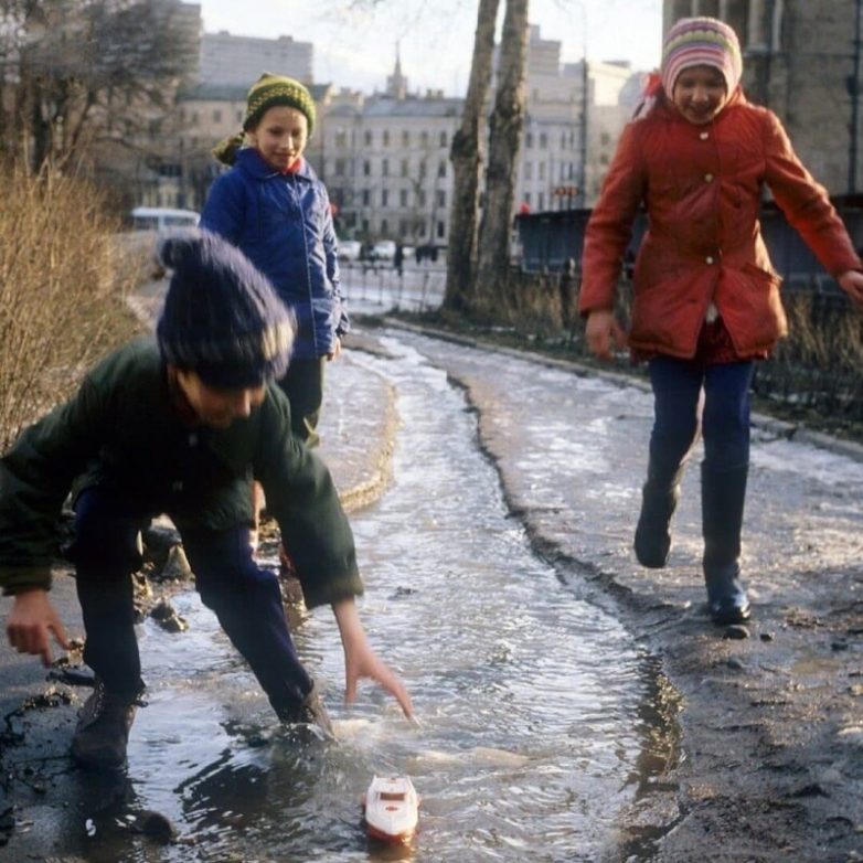 Весенние ручьи и лужи! Класс. Знаешь что от мамки люлей получишь, и всё равно идёшь домой до трусов мокрый. Детство-самая лучшая пора.