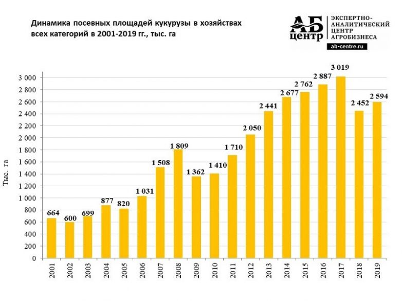 Современные показатели посевов кукурузы, Россия