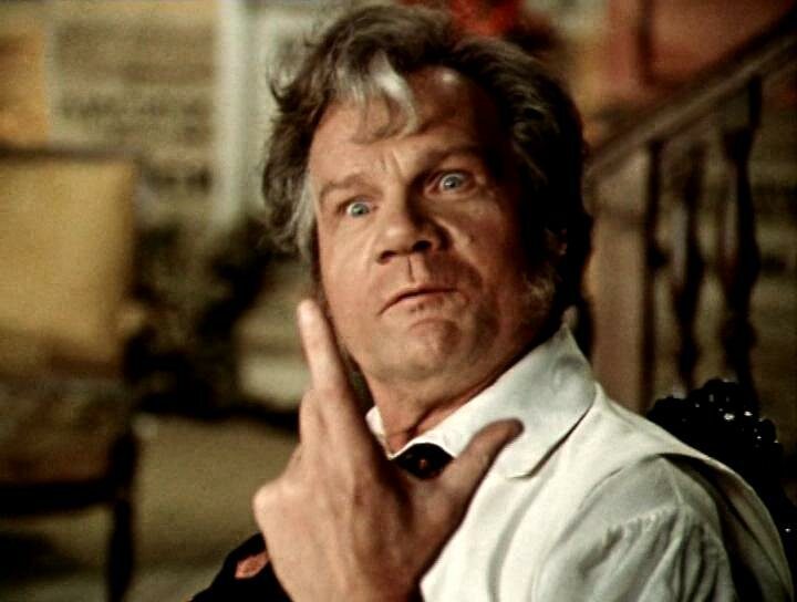 Ну а как артист — Пуговкин был неподражаем! Великолепный комедийный артист. «Девчата», «Свадьба в Малиновке», «Операция „Ы“, „12 стульев“, „Иван Васильевич меняет профессию“- первоклассные комедии! Да и более простеньких, типа „Спортлото-82“ Пуговкин был великолепен — настоящий апельсиновый „барон“!