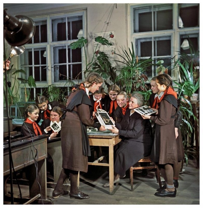 1953. Ученицы приносят изготовленные ими наглядные пособия для кабинета биологии. Фридлянд С.О.