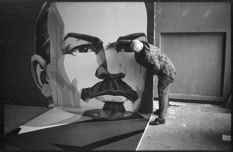 Худсовет принимает панно. Александр Бобкин, 1 апреля 1983 года, г. Новокузнецк, Октябрьский пр-т, д. 6, из архива Александра Алексеевича Бобкина.