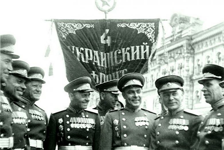 4-й Украинский фронт. Брежнев с однополчанами. Восточная Европа. 1944 год.