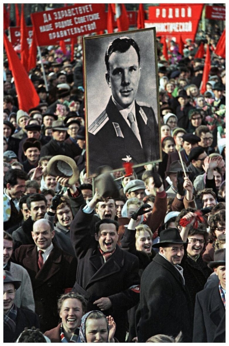 1961. Трудящиеся на Красной площади встречают Юрия Алексеевича Гагарина