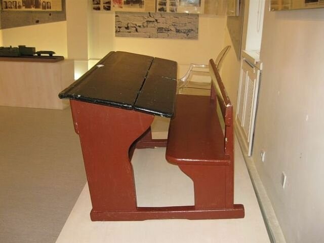 За такой партой я сидела только в 1 классе, а потом мы переехали и в новой школе были уже обычные столы.