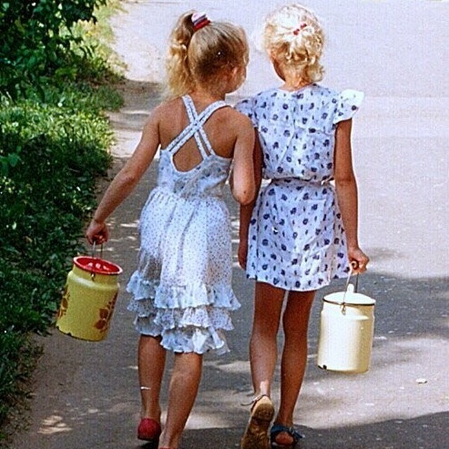 Девчушки с бидончиками. Глаз радует. Сегодня со смартфонами. Отстой.