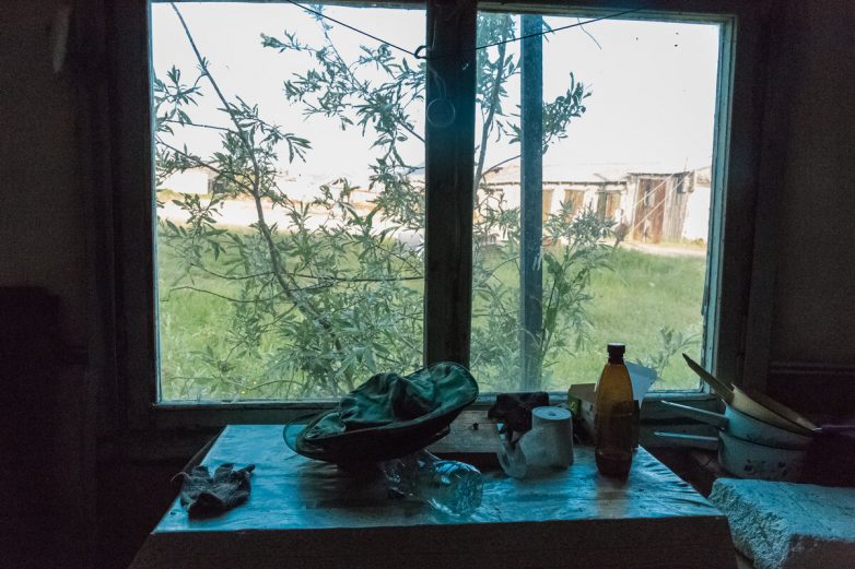 Шагая по заброшенному поселку, мы остолбенели, когда услышали в балке звук телевизора. Оказалось, здесь обитает Ильшат, который присматривает за горнолыжным подъемником.