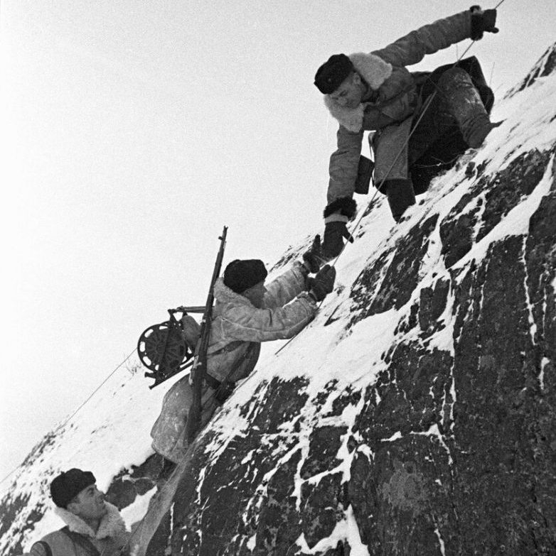 Подразделения бригады морской пехоты переходят через хребет Муста-Тунтури. Роберт Диамент/Sputnik