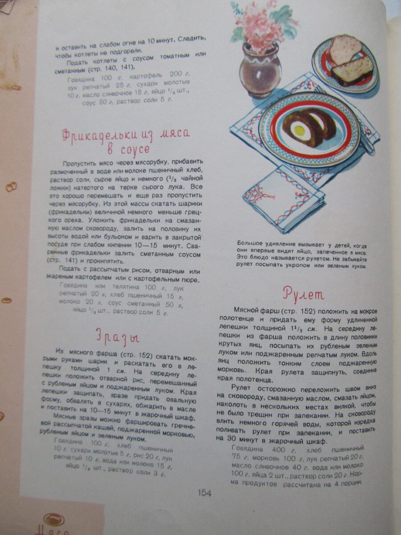 В детстве, в категорически дождливые дни мы играли с подружкой в «ам-не-ам» с этой книгой. Листали страницы и кричали наперегонки, кто первый тот и съел. Виртуально, конечно. Когда попадались пирожки, торты или прочие сладости, мы истово кричали «АМ». А когда какой-нибудь бульон с яйцом, каша или рыба отварная, то соответственно «НЕ АМ». Да, сейчас бы я кричала наоборот…