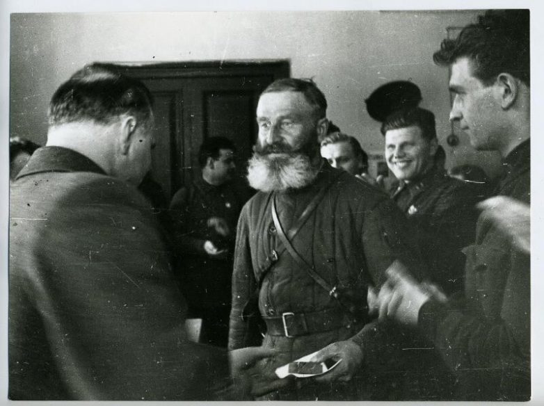 Партизан получает награды. Северо-Западный фронт. 1942 год. Автор: Сергей Коршунов.
