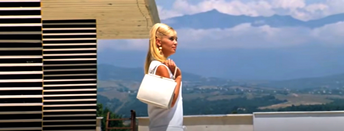 Есть еще такой замечательный советский фильм — «Жених с того света» (если кто-то не смотрел — советую). В фильме главный герой (Ростислав Плятт) имеет невесту, невероятную модницу, которую играет прелестная Вера Алтайская. И что вы думаете? У неё тоже белая сумочка. Хорошенькая и очень современная, кстати.