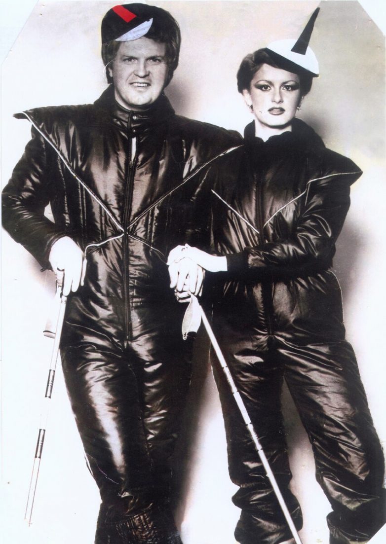 Насколько я помню те далекие годы, лыжники одевались куда проще. Болоньевые утепленные куртки, толстые трико и вязаные шапки.