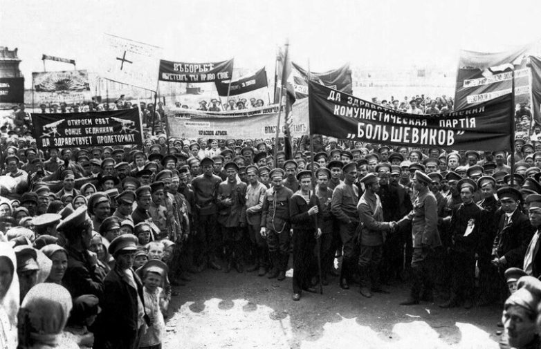 Митинг-демонстрация красногвардейцев-партизан, рабочих и граждан города 1 мая. 1918.