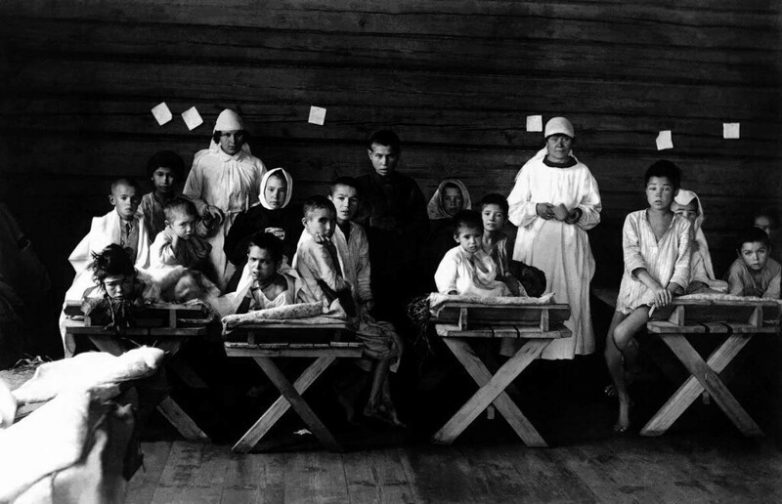 Подготовка детей к эвакуации из голодающей Челябинской губернии в Башкирию. Изолятор. 1922.