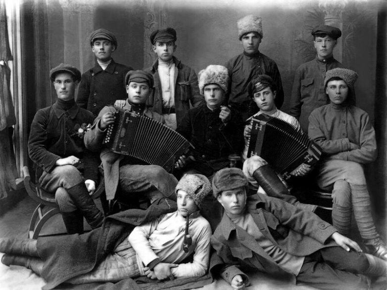 Комсомольцы-железнодорожники, участвовавшие в разгроме колчаковскихвойск на Южном Урале. 22 апреля 1920.