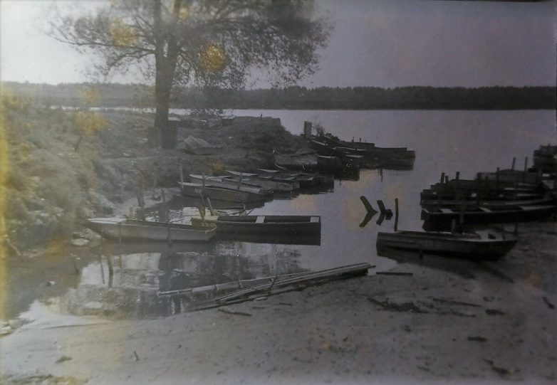 Лодки без замков и ящики у дерева, окраина Твери, река Волга