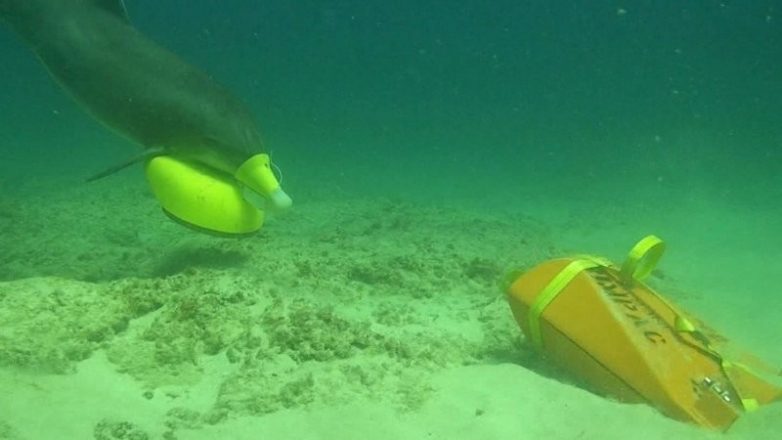 Обучение дельфина отмечать местоположение морских мин с помощью буя