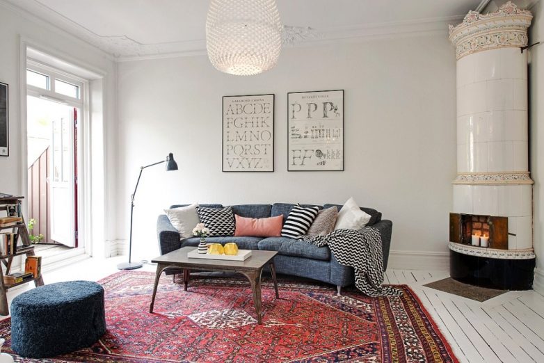 Пригодится хорошо сохранившийся качественный ковер из натуральной шерсти. Изделие великолепно впишется практически в каждый стиль интерьера. Ковер можно использовать для зонирования большой комнаты. Важно не ставить на него тяжелую мебель. Легкий журнальный стол, стул, легкое кресло ковру не повредят.