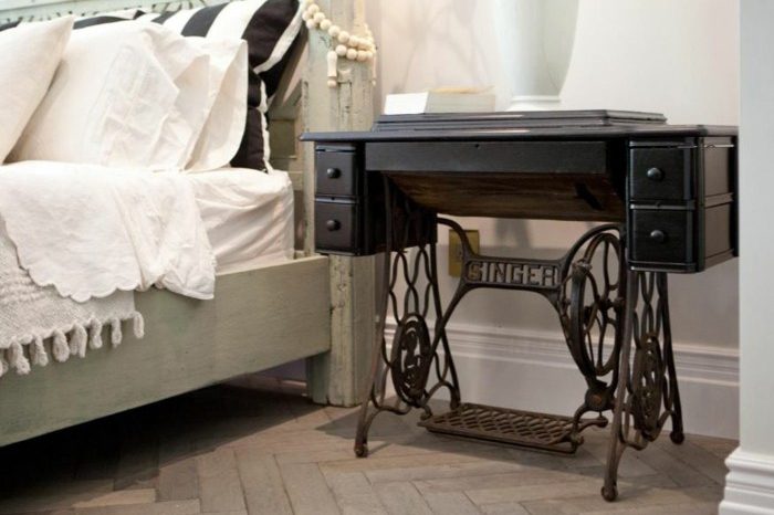 В Советском Союзе многие хозяйки пользовались ножными швейными машинками, которые крепились на специальной тумбочке. Если вы сохранили данный артефакт, не спешите задвигать его в дальний угол кладовки. Даже нерабочая швейная машинка выгодно украсит интерьер, станет «гвоздем программы».