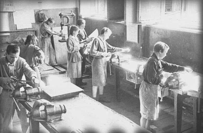 Дети в цехе завода. Москва, 1942 год. Сергей Васин.