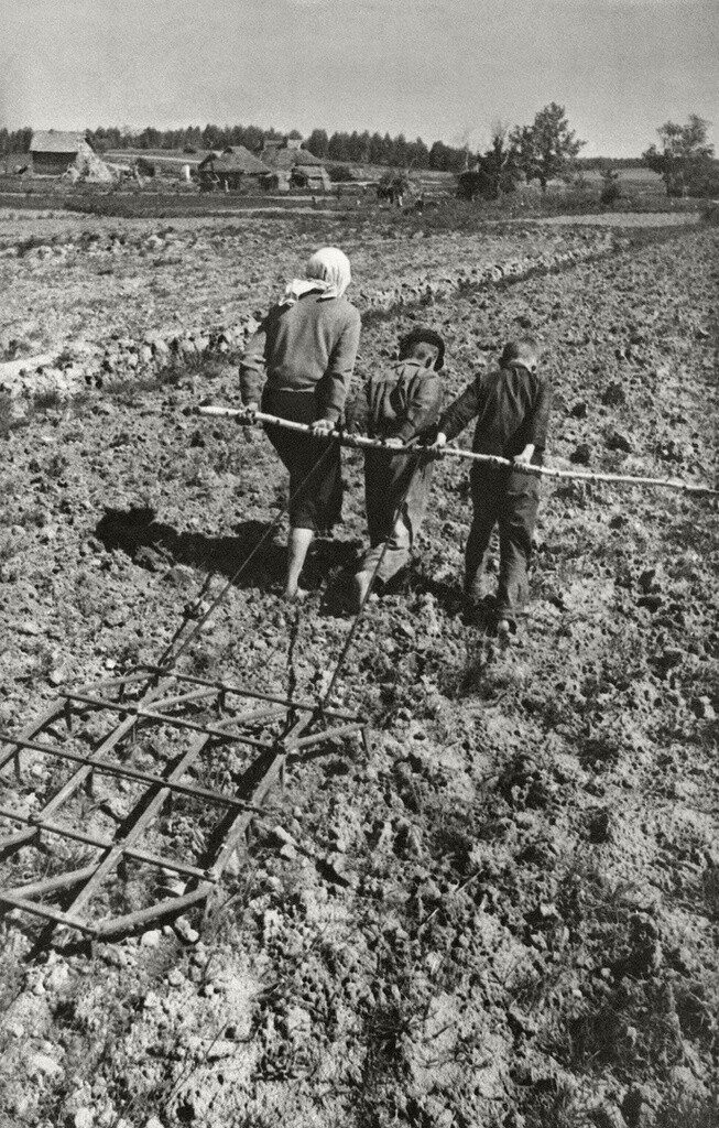 Женщина с детьми за бороной. 1941–1945 годы. Сергей Коршунов.