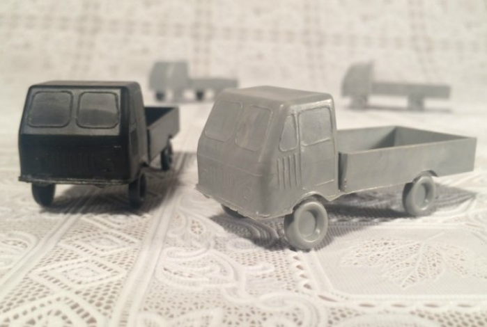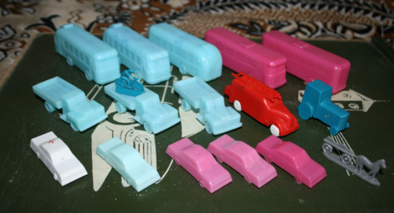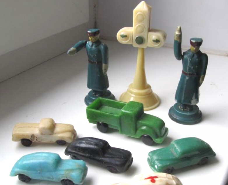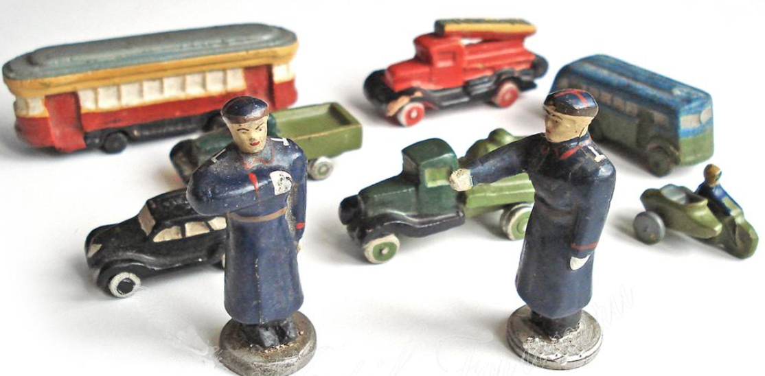 Подобные наборы выпускались в различные годы, начиная с 40-50-х, и разными производителями. Так, например, одни из самых первых наборов были выполнены из мастики, автомобили по своему дизайну напоминают технику 30-х гг., а форма регулировщиков — из второй половины 40-х гг. Чуть позже, примерно в середине 50-х, появляется новый набор, в котором немного меняется внешний вид техники, и используется уже не мастика, а актуальные для того времени полимеры.